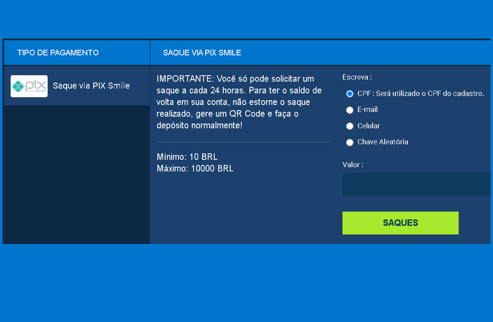 Como funciona: Para sacar seus ganhos na Pixbet, você deve enviar uma solicitação de saque através do site ou aplicativo. O valor mínimo de saque é de R$ 10, exceto no caso de encerramento da conta, quando você pode sacar o saldo total.